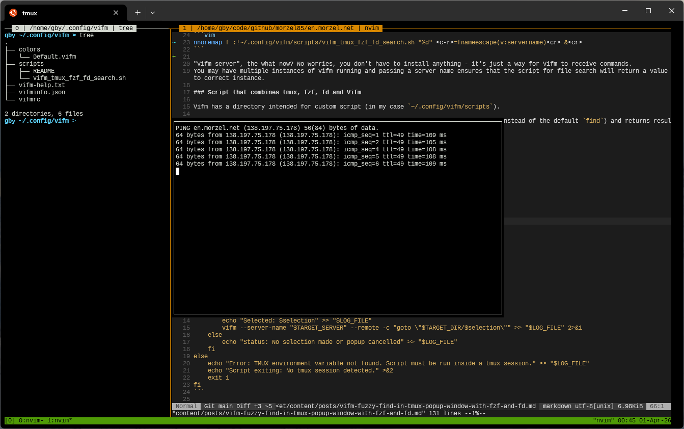 Script that combines tmux, fzf, fd and Vifm