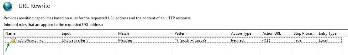 <rule name="FixOldAspxLinks" stopProcessing="true">