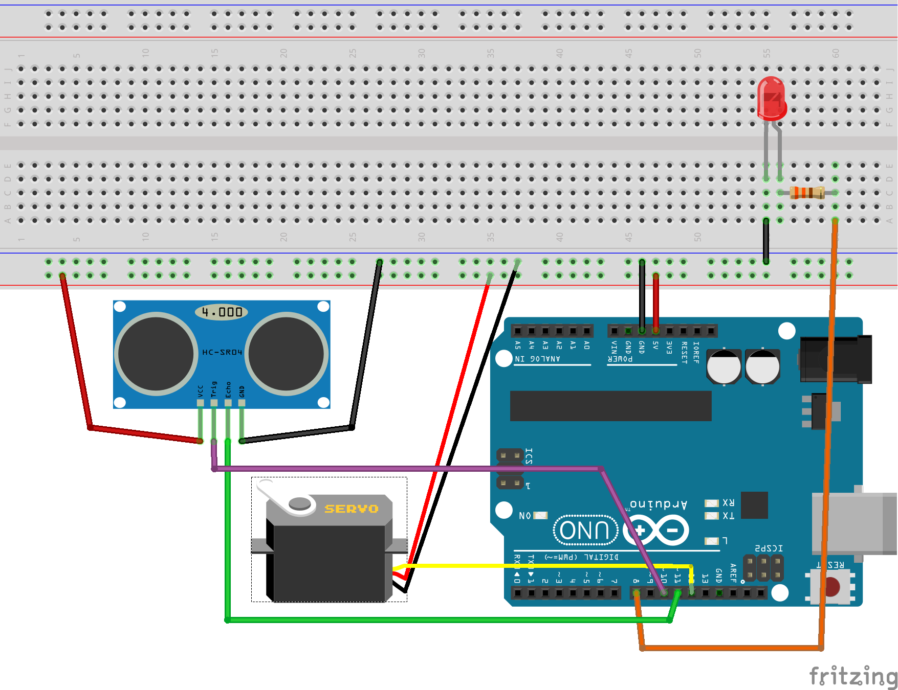 | Arduino sketch (firmware) | Measuring distance, moving servo and sending data to PC over serial port |
