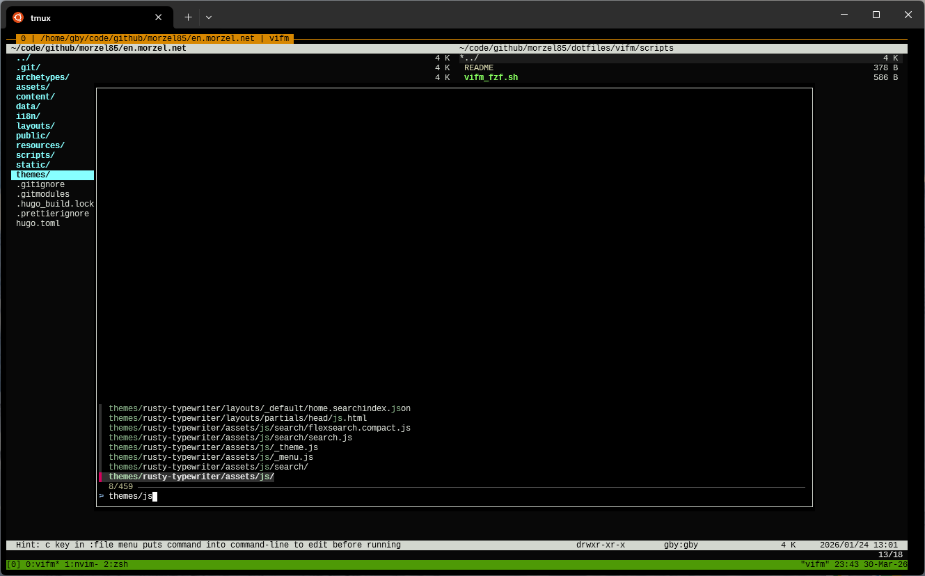 Vifm Fuzzy Find in tmux Popup Window with fzf and fd